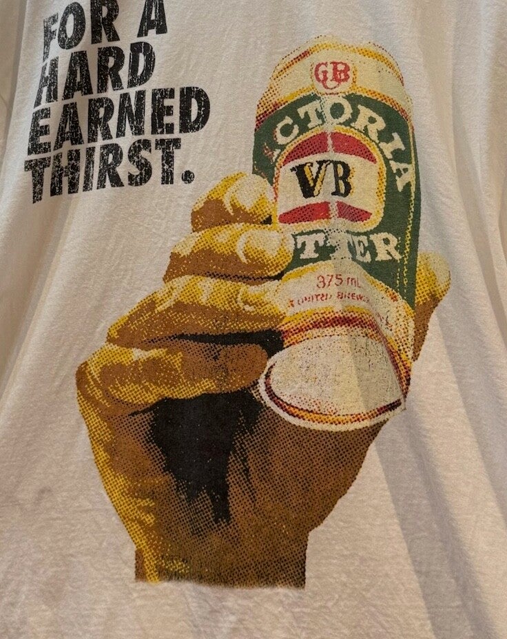 Pay tribute to an Aussie classic with this VB tee featuring the iconic “For a hard earned thirst” slogan. Bold graphics, laid-back fit — perfect for beer lovers and vintage vibe seekers alike. Size 3XL
